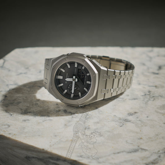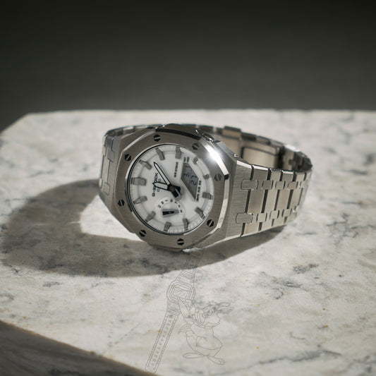 CASIOAK SILVER / WHITE DIAL G-SHOCK MOD GA2100 GA-2100 MEN’S WATCH