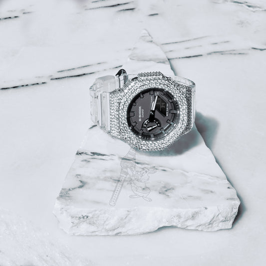 Casio G-Shock GA2100 Clear Skeleton ICED OUT VVS Moissanite Bezel Mod + OG Bezel