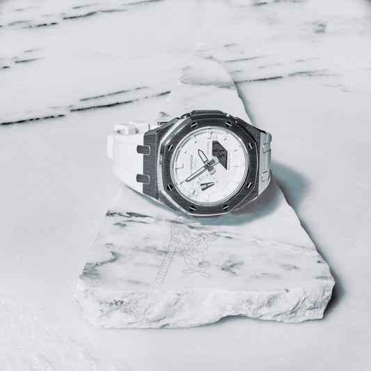 Casio GA-2100 G-Shock Watch – Metal Case & Rubber Strap Mod – White Dial