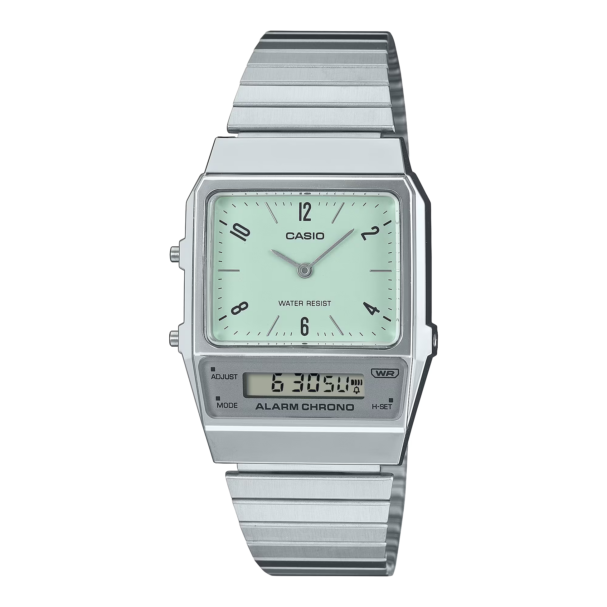 CASIO AQ-800E-3A A/D QUARTZ GREEN DIAL STEEL WATCH