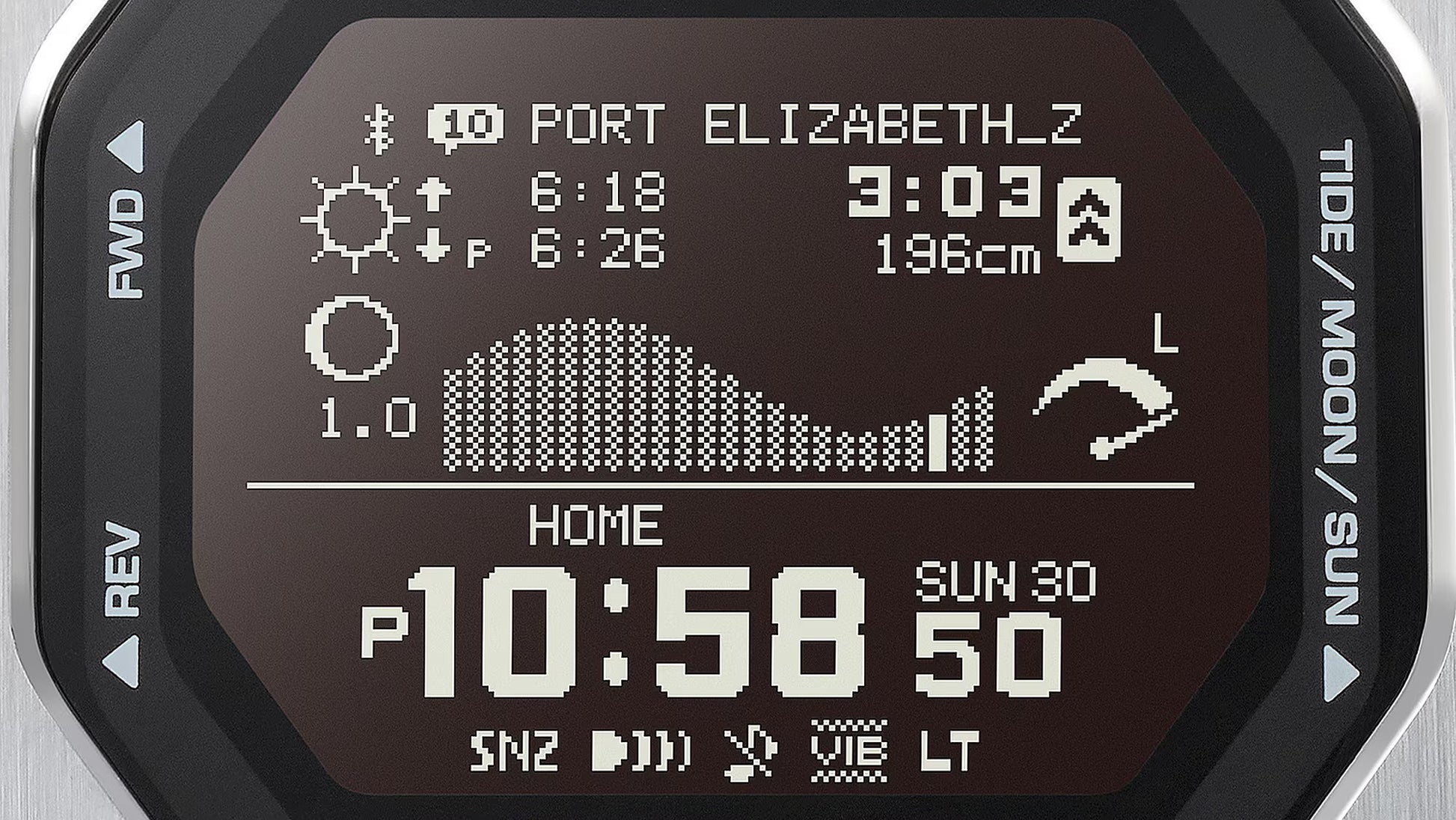 Get full functionality at your fingers with Smartphone Link. Just use the dedicated app to select one of some 3,300 major surf spots around the world and send location-specific tide patterns and daylight conditions to the watch. The high-definition MIP LCD also improves visibility and delivers clear tide graph and moon age, as well as high/low tide times and levels, and sunrise/sunset times — all at a glance. This watch is built to help surfers prepare for tough competitions around the world.