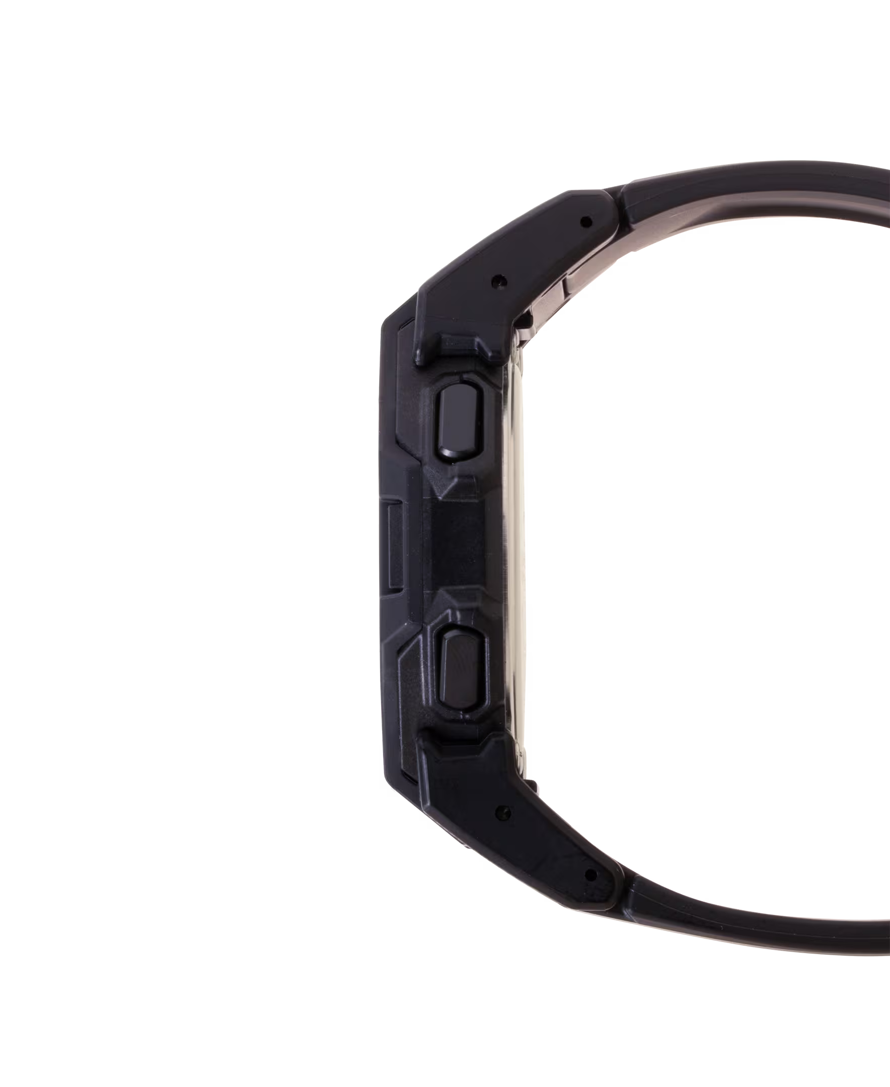 An oblong rectangular bezel maximizes the viewing area of the display while retaining a slim case and weight. Designed for those who want a small digital watch, the thin case and shortened band provide a comfortable fit, crafting a timepiece you can wear all day and night. Whether at work, on a trek outdoors, or exploring our busy world, the black digital G-SHOCK GDB500-1 is robust and reliable without being cumbersome.