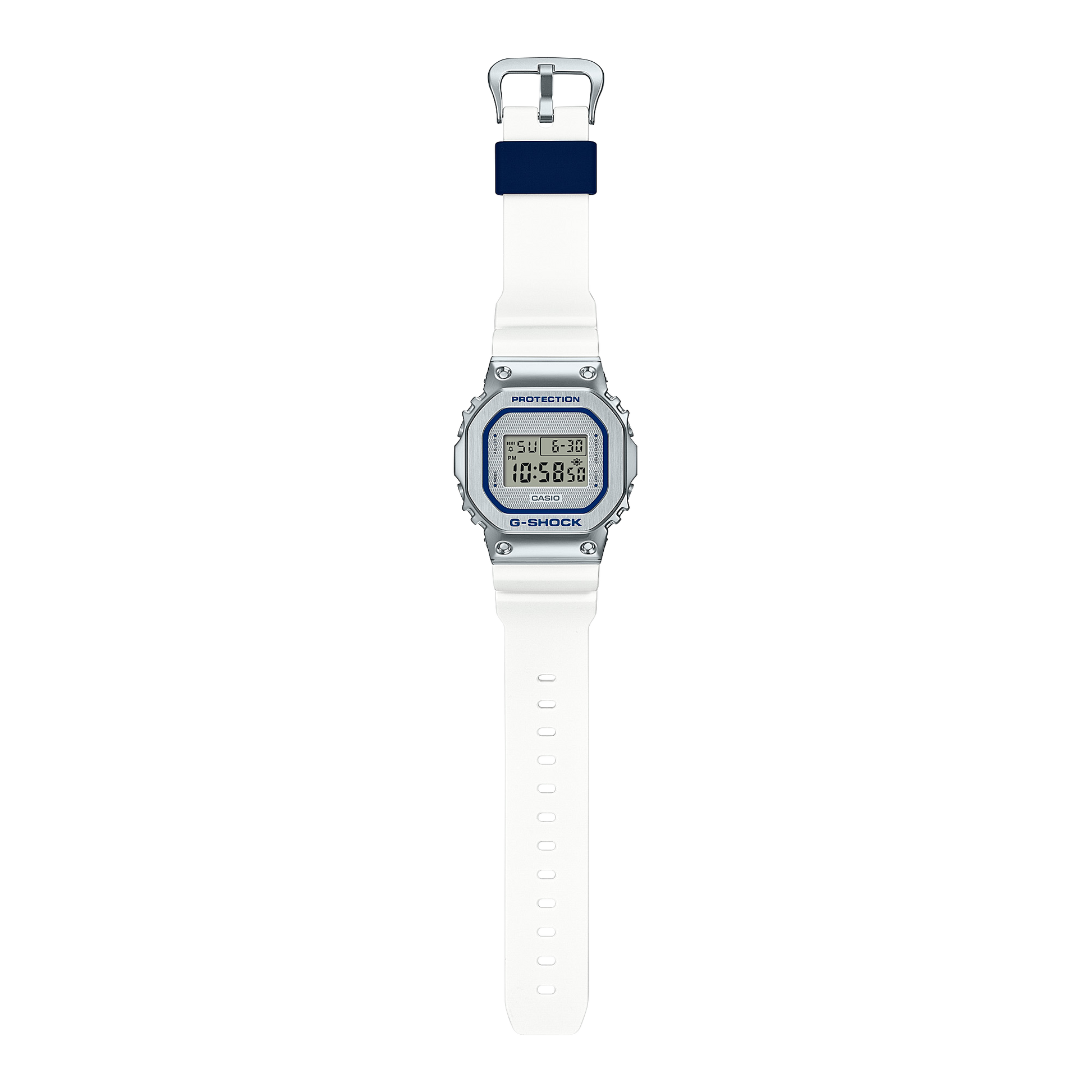 The G-SHOCK GM-5600 and its compact mate, the GM-S5600, feature a luxe metal bezel paired with a white band and touches of navy blue. We bring back the cloth band texture from the original pair in glass printing on the watch faces for a simple, streamlined design ready to accompany you wherever your love takes you.