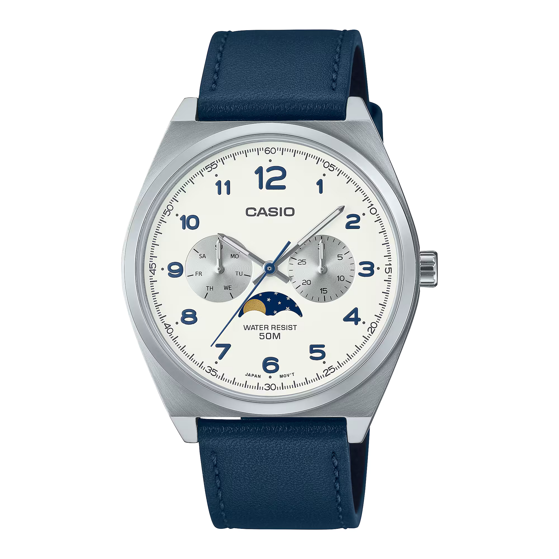 CASIO MTP-M300L-7AV MOON PHASE LEATHER BAND ANALOG WHITE DIAL WATCH