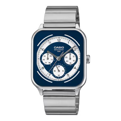 Hard to find and newly released, the MTP-M307D-2BV stands out with its stainless-steel case, link bracelet, and rich blue sunburst dial. A clean, modern evolution of Casio’s analog design with day, date, and 24-hour displays.